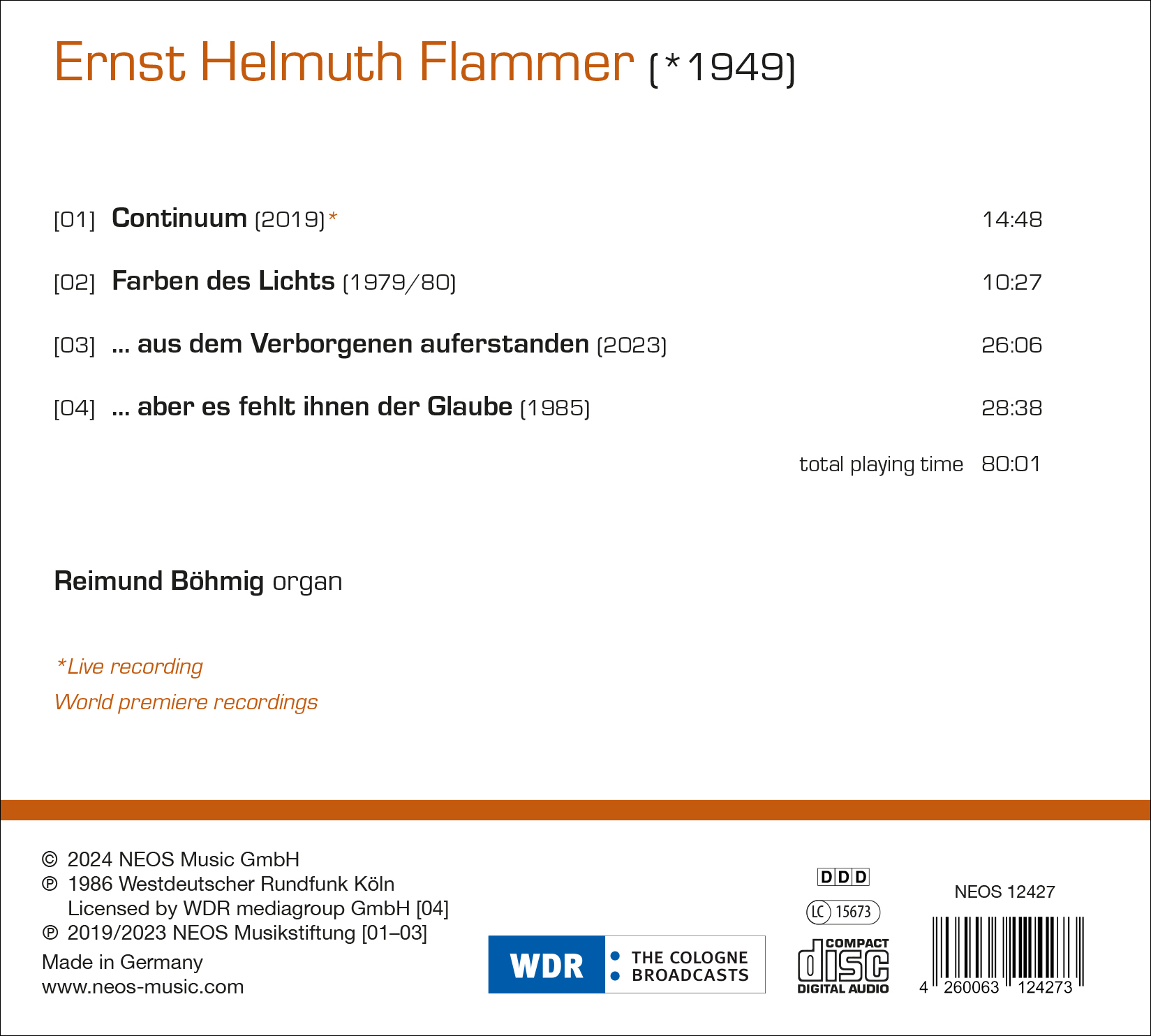 Weiter hat sich mein Komponieren über die glückliche Begegnung mit einigen Pionieren entwickelt, die federführend für die Renaissance der Orgel in der Neuen Musik stehen: Reimund Böhmig, Hans-Ola Ericsson, Christoph Maria Moosmann und Zsigmond Szathmáry, die meine Werke herausragend interpretierten und immer noch interpretieren. Auf dieser CD wird nun ein Teil jener Orgelwerke vorgestellt, die Reimund Böhmig, der Magier der Klangfarben unter den Organisten, auch teilweise auf Kleinorgeln interpretiert, was angesichts des mitunter orchestralen Duktus dieser Stücke an ein Wunder grenzt.